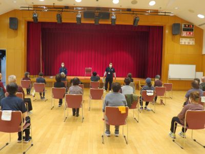 6月8日 皆さん元気に運動しています 今回は、更に巧妙になっている「振込詐欺」の実態と対策について 大宮東警察署の方がによる、実演と解説が行われました。 |